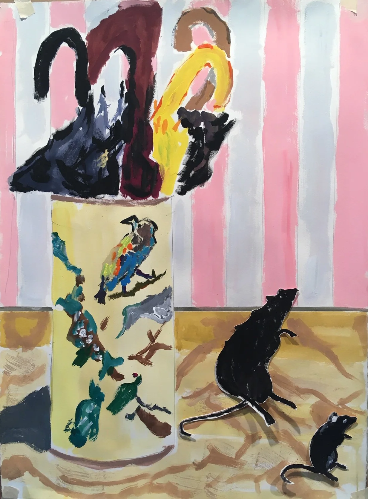 Image: André Gregory, Things that Go Bump in the Night, 2018, acrylic on paper, 30 x 22 inches (76.2 x 55.8 cm)